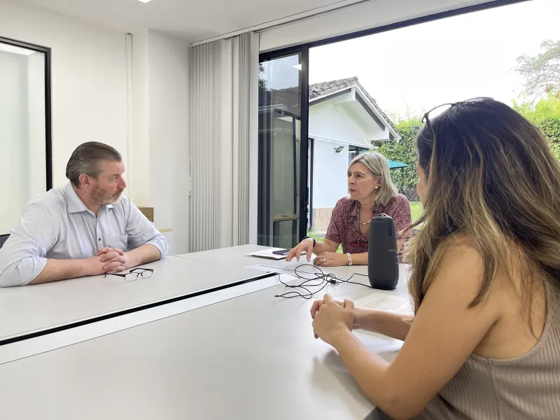 Vicente Durán, SJ, rector de la Javeriana Cali, en compañía de Camilo Rocha, vicerrector académico y Tatiana Valencia, directora del Centro...